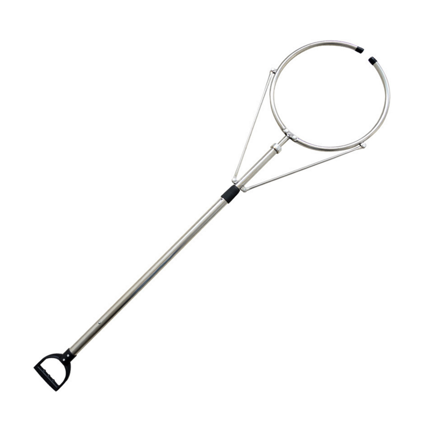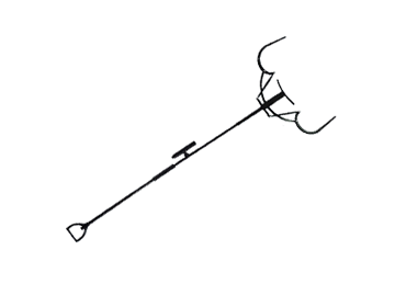 末端装有半月弧形插头,设有锐利的棱角。便于携带,使用灵活,操作简单。当遇持刀行凶者,拉足扦体,管内弹簧梢弹出,即可固定,稍用力顶肇事者的腰部或腿部,即可固定,使其无法活动。最远使用距离:2.4米。