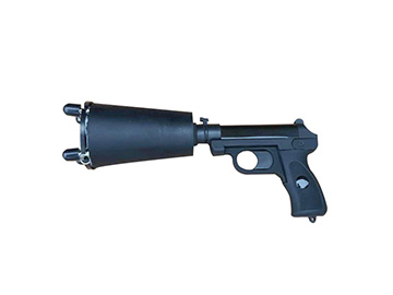 火药动力抓捕网利用空爆弹撞击后爆炸,在瞬间产生一股强气流,推动一定质量的橡皮头,带动网纲呈一定角度的向前运动,网在运动过程中迅速张开,当前方遇到物体时,网纲四角的橡皮头,由于惯性作用,将自动盘罩,达到抓捕目标的效果。