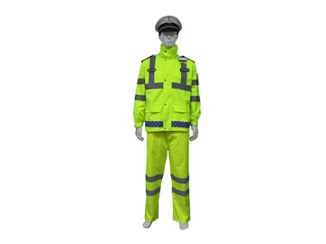 材料:100%涤纶荧光黄网布 反光材料:白色pvc晶格条 尺码:165cm/170cm/175cm等